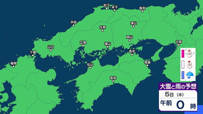 山口県は気圧の谷や湿った空気の影響によりおおむね曇りで、雨が降る所があるでしょう。