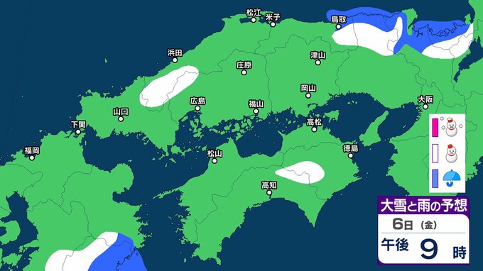 【中国・四国地方の雪 どうなる?】広島・岡山・山口・鳥取・島根・香川・愛媛・高知・徳島 2月4日(水)~9日(月)雪雨シミュレーション【気象庁 4日午後6時】 RSK山陽放送 2026年2月4日(水) 18:00 国内 6日(金) 4日(水)~9日(月)中国・四国地方の雪雨シミュレーション画像 4日(水)~9日(月)中国・四国地方の雪雨シミュレーション画像