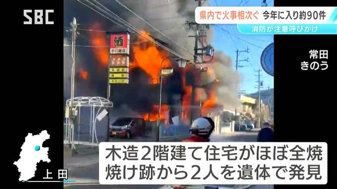 長野県内では今年に入って火事が相次ぎ、SBCのまとめでは、きょうまでにおよそ90件の火災が発生、11人が死亡していて、消防が火の取り扱いに注意するよう呼びかけています。