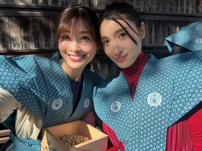 公開された写真では、姉妹で青地に白い模様の裃(かみしも)を身にまとい、升を手にする姿を披露。「いつも守ってくれている大切な大好きな姉と一緒に福を呼ぶことが出来て本当に嬉しいです」と感謝を込め、「どうか良い節分の夜を 福は内」とコメントし、投稿を締めくくりました。