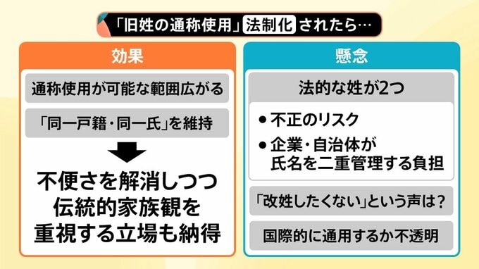 「旧姓の通称使用」が法制化されることでの課題もあります。