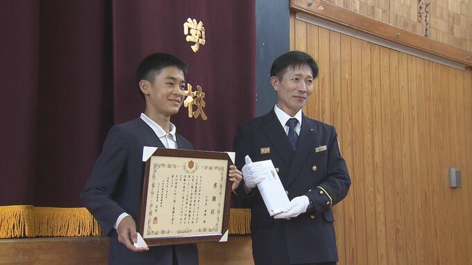 2月5日、消防は八代市立金剛小学校の全校集会で、仁井本さんに感謝状を贈りました。そして児童たちに、こう呼びかけました。