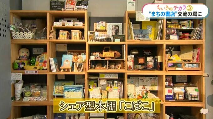 手作りの小物や地元特産のかつお節、パソコン教室の案内までが並ぶ一風変わった本棚。シェア型本棚の「こばこ」です。