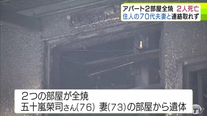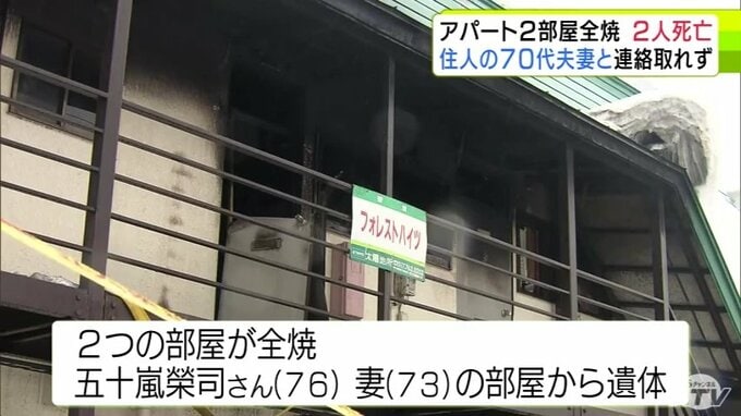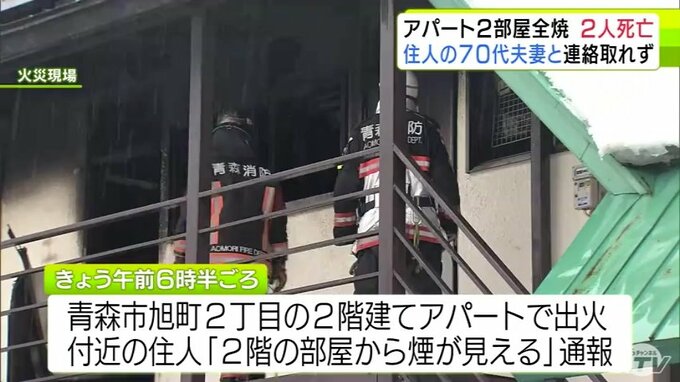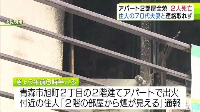 青森市のアパートで火災 2つの部屋が全焼して焼け跡からは2人の遺体 住人の70代夫妻と連絡取れず