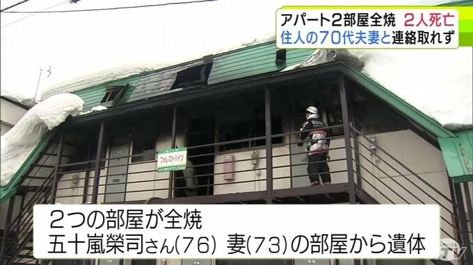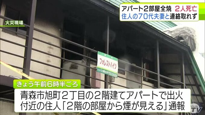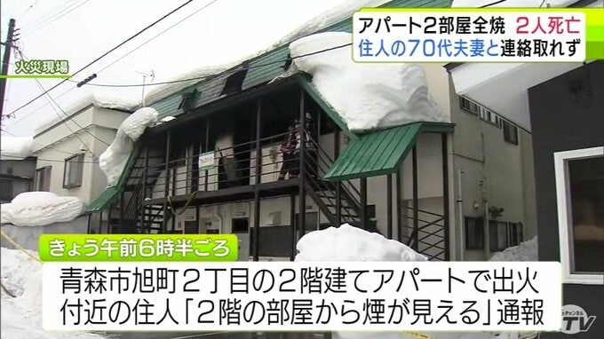 3. 青森市のアパートで火災 2つの部屋が全焼して焼け跡からは2人の遺体 住人の70代夫妻と連絡取れず