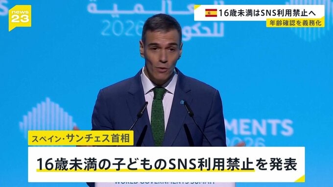 スペインのサンチェス首相は3日、16歳未満の子どもによるSNSの利用を禁止すると発表しました。SNSを運営するプラットフォーム企業に対し、年齢確認システムの導入を義務づけるほか、違法コンテンツやヘイトスピー…