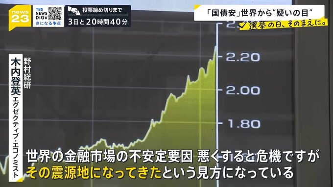 「財政の要因だけでここまで短期間で、大きく金利が上がったのは経験したことがない。世界の金融市場の不安定要因、悪くすると危機ですが、その震源地になってきたという見方になっている」