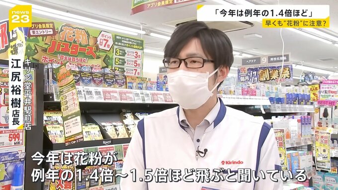 「今年の花粉が例年の1.4倍~1.5倍ほど飛ぶと聞いている。早いうちから対策するのは大事かなと」