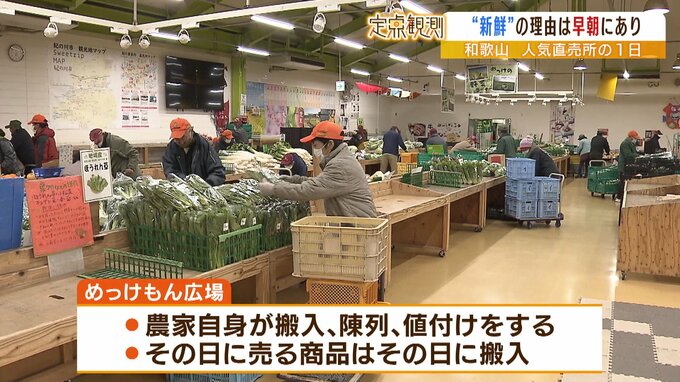 白菜が1玉150円、みかんは1袋200円。和歌山県産の新鮮な野菜や果物をお手ごろ価格で販売している和歌山県紀の川市の「めっけもん広場」。去年の売り上げは24億円と大人気スポットで、店内は連日大にぎわいです。その人気直売所の師走の1日を定点観測しました。