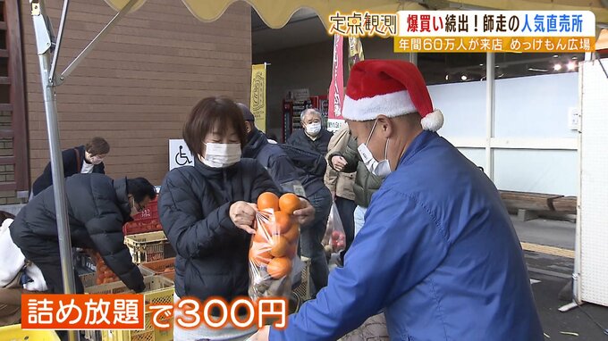 午前11時50分、店の入り口前に人だかりができていました。野菜や果物が詰め放題で300円という名物イベントです。