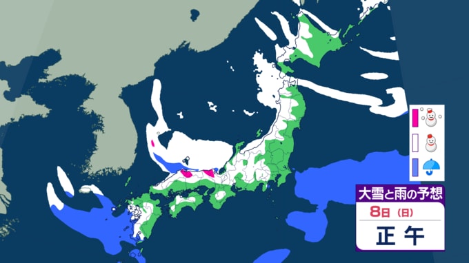 【大雪情報】8日(日)は「警報級の大雪」おそれ 北陸70センチ、中国40センチ、近畿30センチ予想 あす6日(金)から雪へ 太平洋側も雪予報 雨雪シミュレーション 長崎放送 2026年2月5日(木) 06:12 国内 太平洋側でも雪の予想 【画像を見る】◆関東 ◆全国 ◆東日本◆九州 雨雪シミュレーション 気象庁は5日早朝、「暴風雪と高波及び大雪に関する全般気象情報(第1号)」を発表。 北日本から西日本の日本海側を中心に6日から8日頃にかけて降雪が続き、8日頃は降雪が強まって「警報級の大雪」となるおそれがあります。 また、普段雪の少ない西日本や東日本の太平洋側でも雪が降る所があると予想されています。