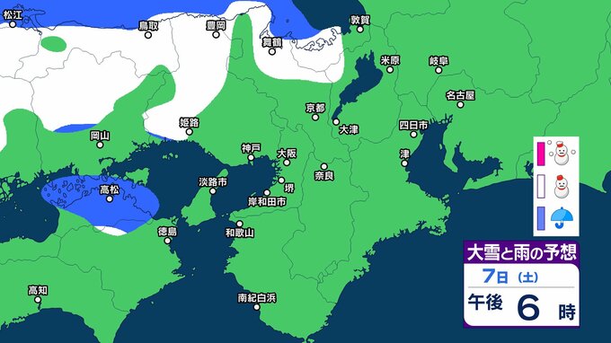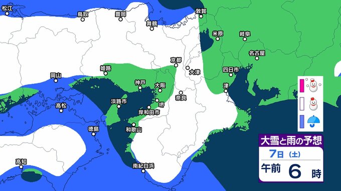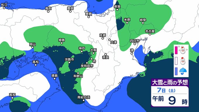 【雪の予想】近畿地方(大阪・京都・兵庫・滋賀・奈良・和歌山)の雪雨シミュレーションと16日間天気予報【気象庁/2月5日発表/関西】 RSK山陽放送 2026年2月5日(木) 10:32 国内 天気 7日(土) 5日~9日の雪雨シミュレーション