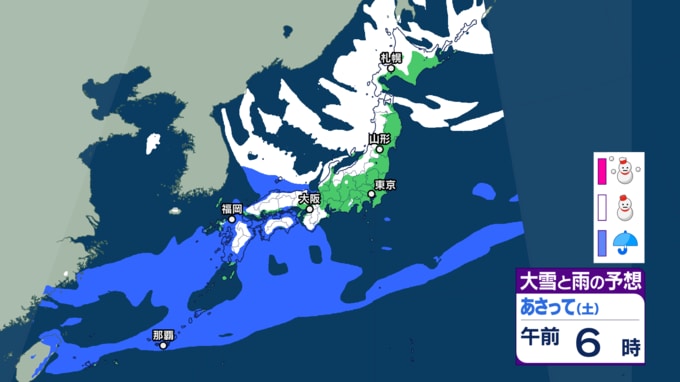 【大雪・天気】衆議院選挙の投開票日は広範囲で雪か...寒波直撃で関東でも雪の可能性 日本海側では警報級の大雪も【6日~8日の降雪シミュレーション】 テレビユー山形 2026年2月5日(木) 12:00 国内 ■雪と雨のシミュレーション(7日)