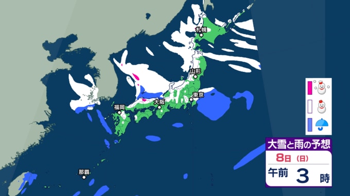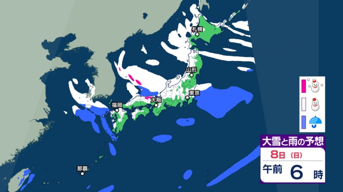 【大雪・天気】衆議院選挙の投開票日は広範囲で雪か...寒波直撃で関東でも雪の可能性 日本海側では警報級の大雪も【6日~8日の降雪シミュレーション】 テレビユー山形 2026年2月5日(木) 12:00 国内 ■雪と雨のシミュレーション(8日) 画像ありの記事を最初から https://newsdig.tbs.co.jp/articles/-/2447611?display=1