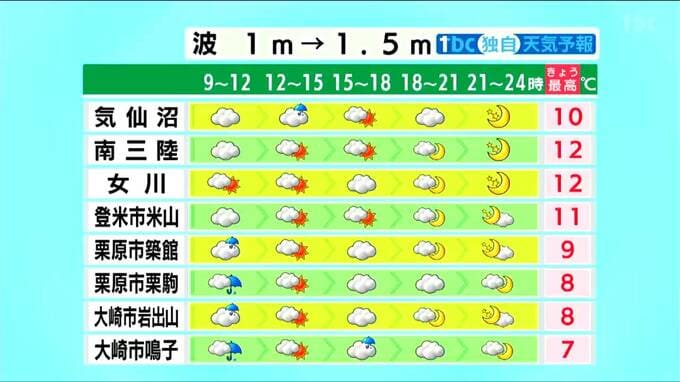 ■名取:12℃ ■亘理:13℃ ■丸森:14℃