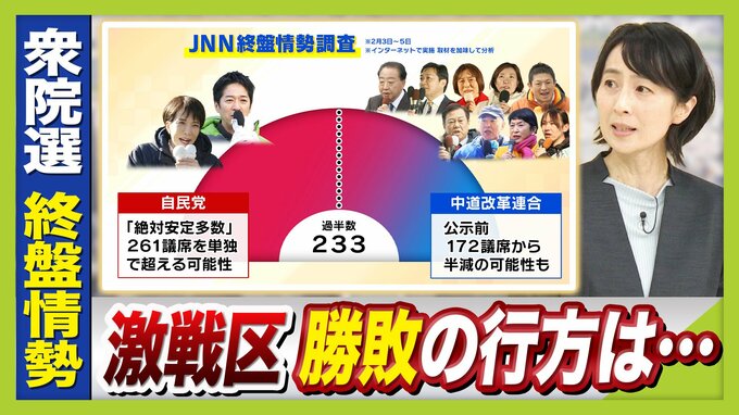 【最新選挙情勢】「自民」単独過半数大幅に上回る勢い 「中道」半減の可能性も 注目の『終盤情勢』関西の"激戦区"を深掘り解説/京都3区・京都6区・奈良1区・大阪7区・大阪19区【JNN終盤情勢】
