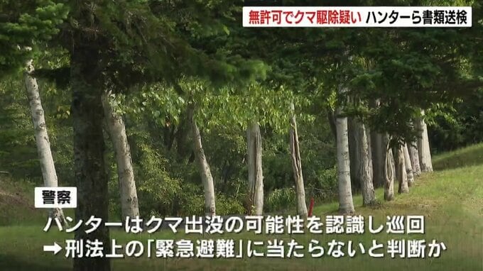 警察はハンターがクマの出る可能性が高いと認識しながら巡回に出たとして、刑法上の「緊急避難」には当たらないと判断したとみられます。