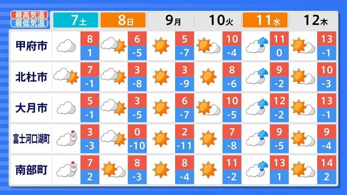 【雪予報】東京都心も土日に雪予想 強い寒気が流入【雪シミュレーション7日(土)~8日(日)1時間ごとに詳しく】雪情報と週間天気予報 東京、神奈川、埼玉、千葉、山梨、長野、群馬、栃木、茨城 南日本放送 2026年2月5日(木) 11:43 国内 関東甲信地方の週間天気予報(画像で掲載) 週間天気予報では、関東甲信で雪マークが出ているところもあります。 ▼(リンク)7日~8日の雪シミュレーション1時間ごと(リンク)記事を最初から読む ▼(リンク)7日~8日の雪シミュレーション1時間ごと(リンク)記事を最初から読む ▼(リンク)7日~8日の雪シミュレーション1時間ごと(リンク)記事を最初から読む