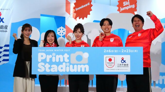 2⽉6⽇(⾦)から2⽉23⽇(⽉)の期間限定で開催されるTEAM JAPAN WINTER FEST『プリントスタジアム presented by 三井不動産』ではさまざまな冬季オリンピック競技を疑似体験し、オリンピックを彩る劇的瞬間の写真を撮影できる、撮影体験施設です。スキージャンプ、モーグル、カーリング、スノーボード、スケルトンの全5種⽬の特別な撮影体験ができます。