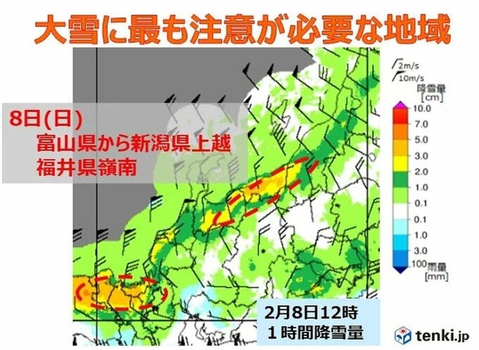 週末にかけて冬型の気圧配置が強まり、8日(日)は日本海側を中心に大雪となるおそれがあります。