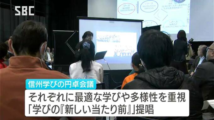県の信州学び円卓会議は、それぞれの子どもに合った学びの実現や選択肢の充実を目指す「学びの『新しい当たり前』」を提唱しています。