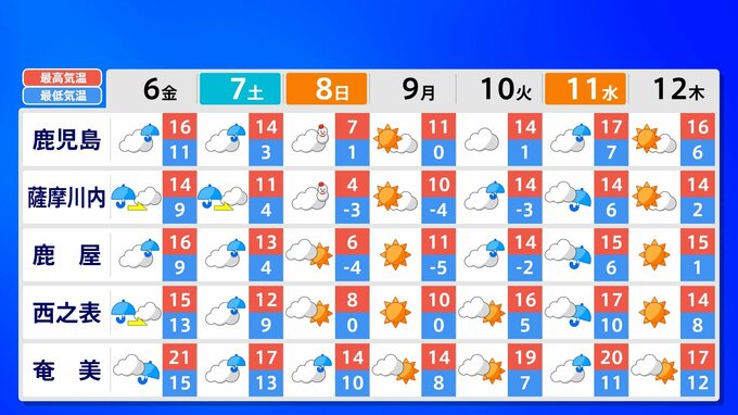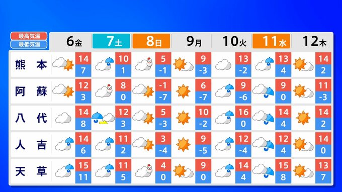 九州地方 各都市の週間予報(6日(金)~ 12日(木))