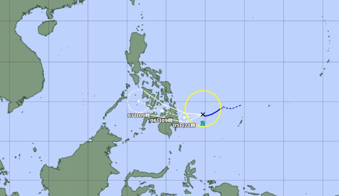 進行方向、速さ 西北西 30 km/h (15 kt)