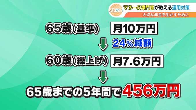 「減額はされちゃうけれども早めに受け取る それをNISAで運用するんですよ 毎月10何万円の積立ができることになりますから それを65歳まで運用しておくと もう65歳から受け取る人よりもかなり資産も増えていることになりますから」