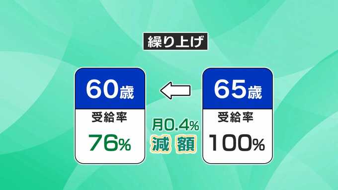 「そうです 65歳が基準ですけれども早く受け取ることを『繰上げ受給』 繰上げ受給をすると1か月あたり0.4%減額されます たとえば日高さんが65歳から20万円もらえるとすれば60歳から受け取るだいたい15万円くらいになると」