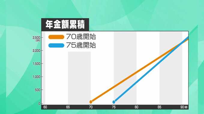 70歳から受給した場合と、75歳から受け取る場合、ある時点で75歳からのほうがトータルの金額が上回ります。