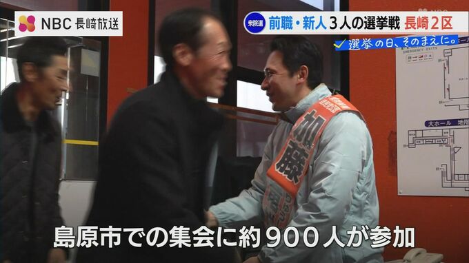 父・寛治さんから地盤を引き継ぐ加藤候補。地元・島原市での集会にはおよそ900人が集まり島原市長も応援に駆けつけました。