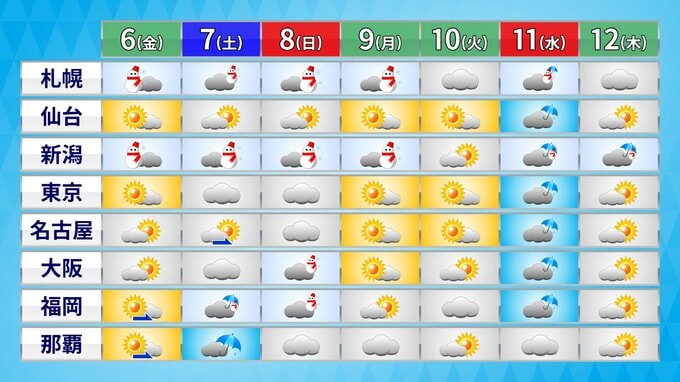 日本海側では再び曇りや雪・雨の天気に戻る見込みとなっています。