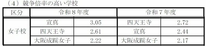 女子校 四天王寺(文理選抜)が10倍 宣間が3.05倍で学校別トップ