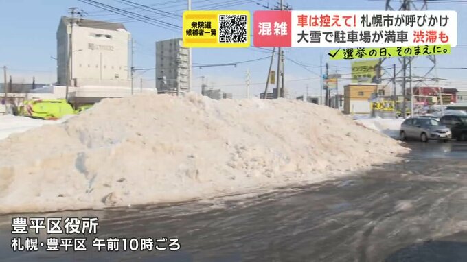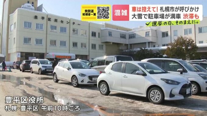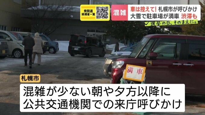 札幌市内の各区役所の駐車場が大雪の影響で著しく混雑しているとして、札幌市は、利用者に車での来庁を控えるよう呼びかけています。