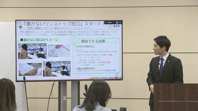 福島市の馬場雄基市長は5日、「書かないワンストップ窓口」を導入することを明らかにしました。これまで転入や出生などの手続きでは、複数の書類に何度も同じ住所や氏名を書き込む必要がありました。