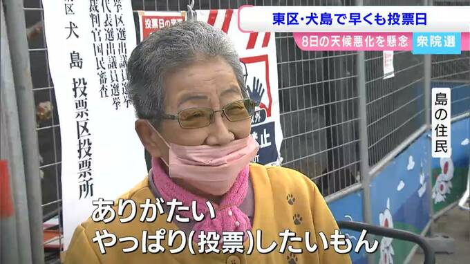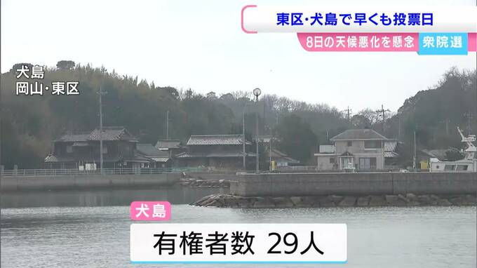 有権者数29人、岡山市の沖合に浮かぶ犬島です【画像③④】。8日の投開票日当日は冬型の気圧配置が強まり、海上でも強風が吹く見込みで、投票箱を運ぶ定期船の運行が困難となることが予想されているため、投票日をきょう(5日)に繰り上げました。