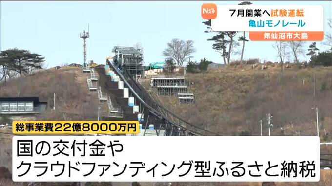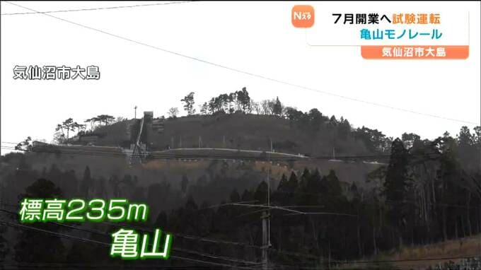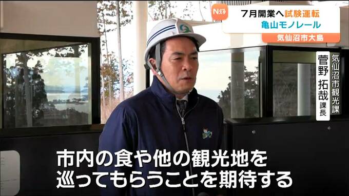 宮城県気仙沼市の大島で整備が進む、モノレールの試験運転が始まりました。新たな観光の目玉として、7月の営業開始が予定されています。