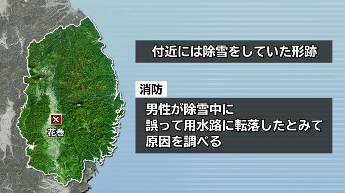 付近には除雪をしていた形跡があり、消防は男性が除雪中に誤って用水路に転落したとみて原因を調べています。