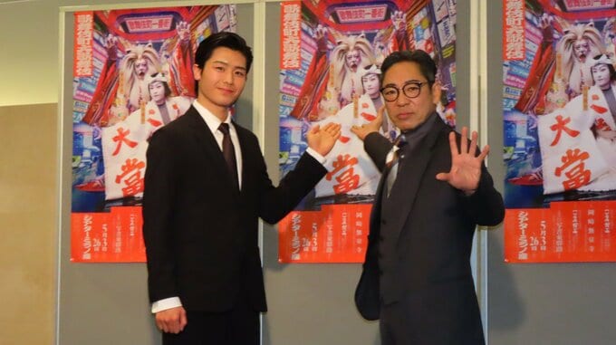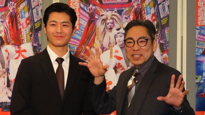 歌舞伎俳優の市川中車さん、市川團子さんが、歌舞伎町大歌舞伎 三代猿之助四十八撰の内『獨道中五十三驛(ひとりたびごじゅうさんつぎ)』の製作発表会見に親子そろって登場しました。