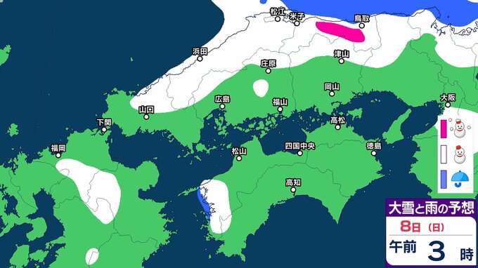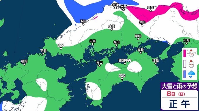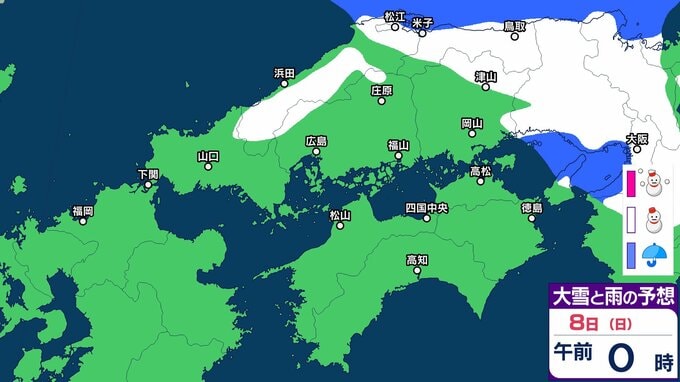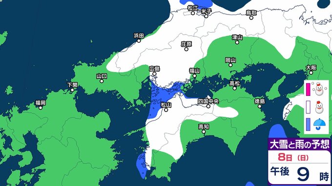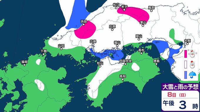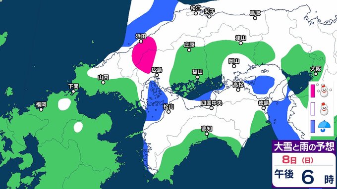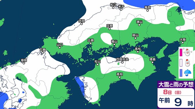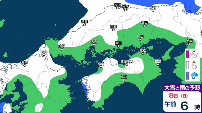 【中国・四国地方の雪の予想】広島・岡山・山口・鳥取・島根・香川・愛媛・高知・徳島 2月5日(木)~10日(火)雪雨シミュレーション【気象庁 5日午後3時51分発表】 RSK山陽放送 2026年2月5日(木) 17:03 国内 8日(日) 5日(木)~10日(火)にかけて中国・四国地方の雪雨シミュレーション 5日(木)~10日(火)にかけて中国・四国地方の雪雨シミュレーション