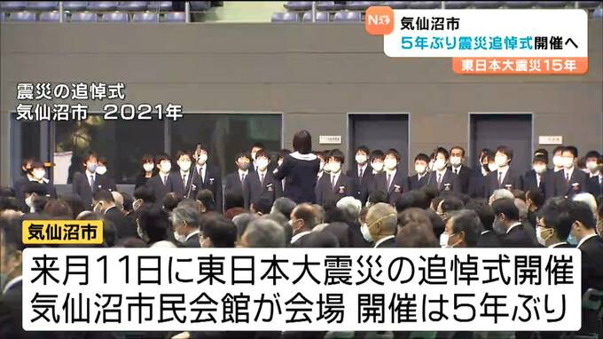 宮城県気仙沼市は、東日本大震災の犠牲者を追悼する式典を、3月11日に5年ぶりに開催すると発表しました。震災の発生から15年の節目となる2026年は、県内7つの市と町が追悼式を開く予定です。