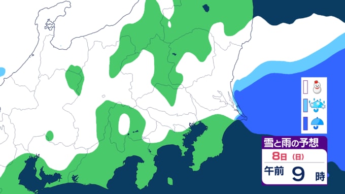 【関東の雪は?】平地で大雪おそれ 8日(日)は南部平地で「5センチ予想」 いつどこで降る?雨雪シミュレーション 長崎放送 2026年2月5日(木) 18:00 国内 8日(日)雪のピークへ 南部平地で「5センチ」予想 【画像を見る】◆関東 ◆全国 ◆東日本◆九州 雨雪シミュレーション ◆寒気は? 【8日18時まで】※多い所 ▶関東地方北部の山地 10センチ ▶関東地方北部の平地 5センチ ▶箱根から多摩地方や秩父地方にかけて 5センチ ▶関東地方南部の平地 5センチ ▶甲信地方 30センチ 予想より地上気温が低くなった場合や、降水量が多くなった場合には、大雪となる地域が拡大する可能性があります。