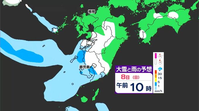 8日(日)は朝から昼前にかけて、薩摩地方を中心に雪が降りそうです。雪の降り方に注意をし、山間部や峠道を車で通る予定の方はチェーンの準備をしておきましょう。