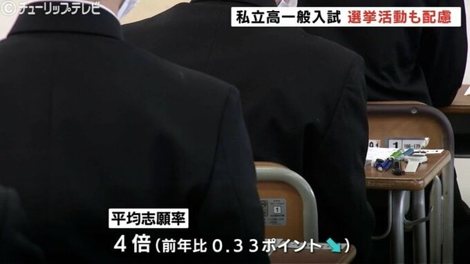 一方、今年は衆院選の選挙活動と試験日が重なったため、県私立中学高等学校協会では、県を通じて各候補者に試験会場周辺での活動を控えるよう依頼しました。