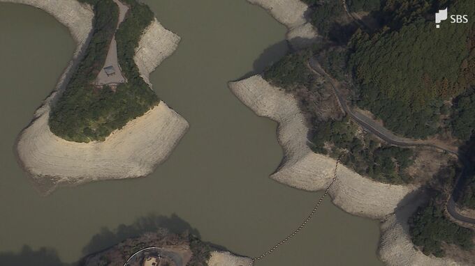 「周智郡森町の太田川ダムです。よく見ますと、山肌があらわになっていて、水位がかなり下がっているのが分かります」