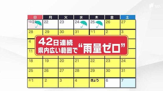 県内の広い範囲では、2025年12月25日のクリスマスに雨が降って以降、"雨量ゼロ"が続いていて、2月5日で42日間まとまった雨が降っていない状況です。
