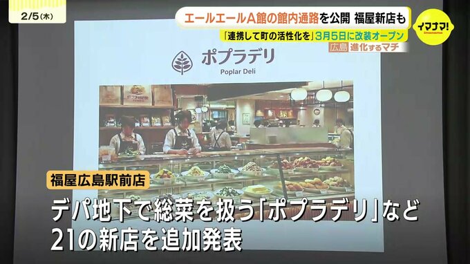 福屋広島駅前店はコンビニエンスストアのポプラが新たにはじめるデパ地下の惣菜店など、3月5日の改装オープンから4月にかけて開業する新店を追加発表しました。