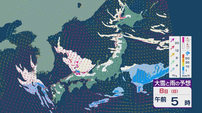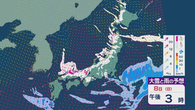 【大雪情報】冬型気圧配置が土日で強まり日本海側は大雪のおそれ 8日(日)「衆議院選挙」投票日の24時間予想降雪量は石川県・福井県で平地でも30センチに 雪と風シミュレーション 北陸放送 2026年2月5日(木) 19:08 国内 日本海側での雪の降り方が本格的になるのは8日(日)です。日本海西部で風が収束し発生、発達した雪雲が山陰から近畿北部にかけて流れ込んできそうです。北陸でも雪が降り続き、強まるところがあるでしょう。