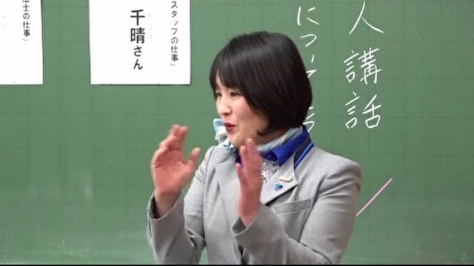 石川県の能登空港で搭乗案内などの接客業務に関わる女性グランドスタッフが5日、輪島市の中学生たちに、働く楽しさや諦めない気持ちを伝えました。
