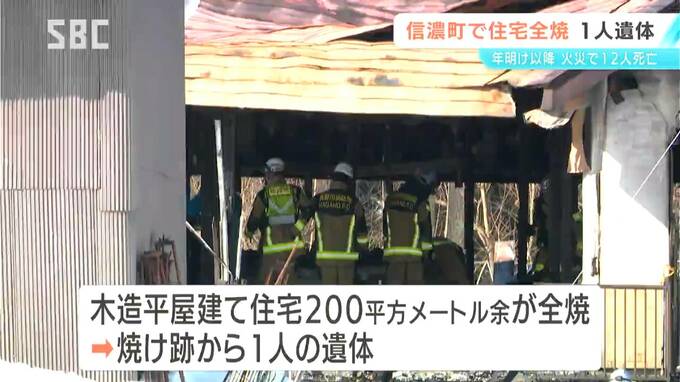長野県信濃町で午前、住宅が全焼し、焼け跡から1人の遺体が見つかりました。この家に住む80代の女性と連絡がとれていないということです。